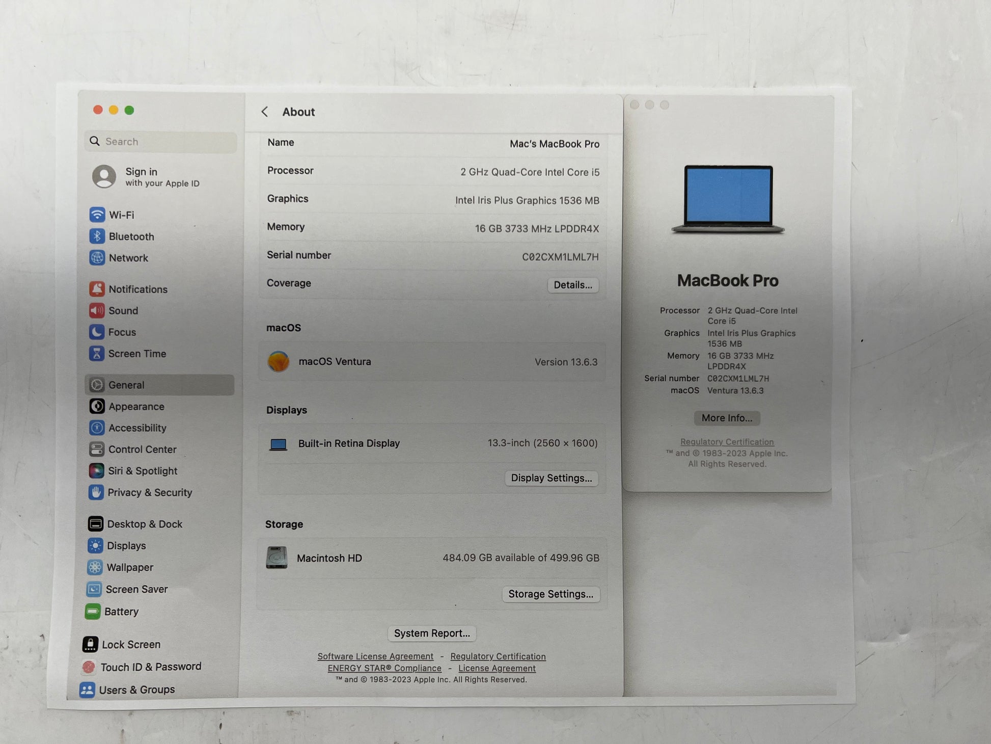 A2251 Apple 2020 MacBook Pro 13" Logic Board 2.0GHz i5 16GB RAM 512GB + Touch ID