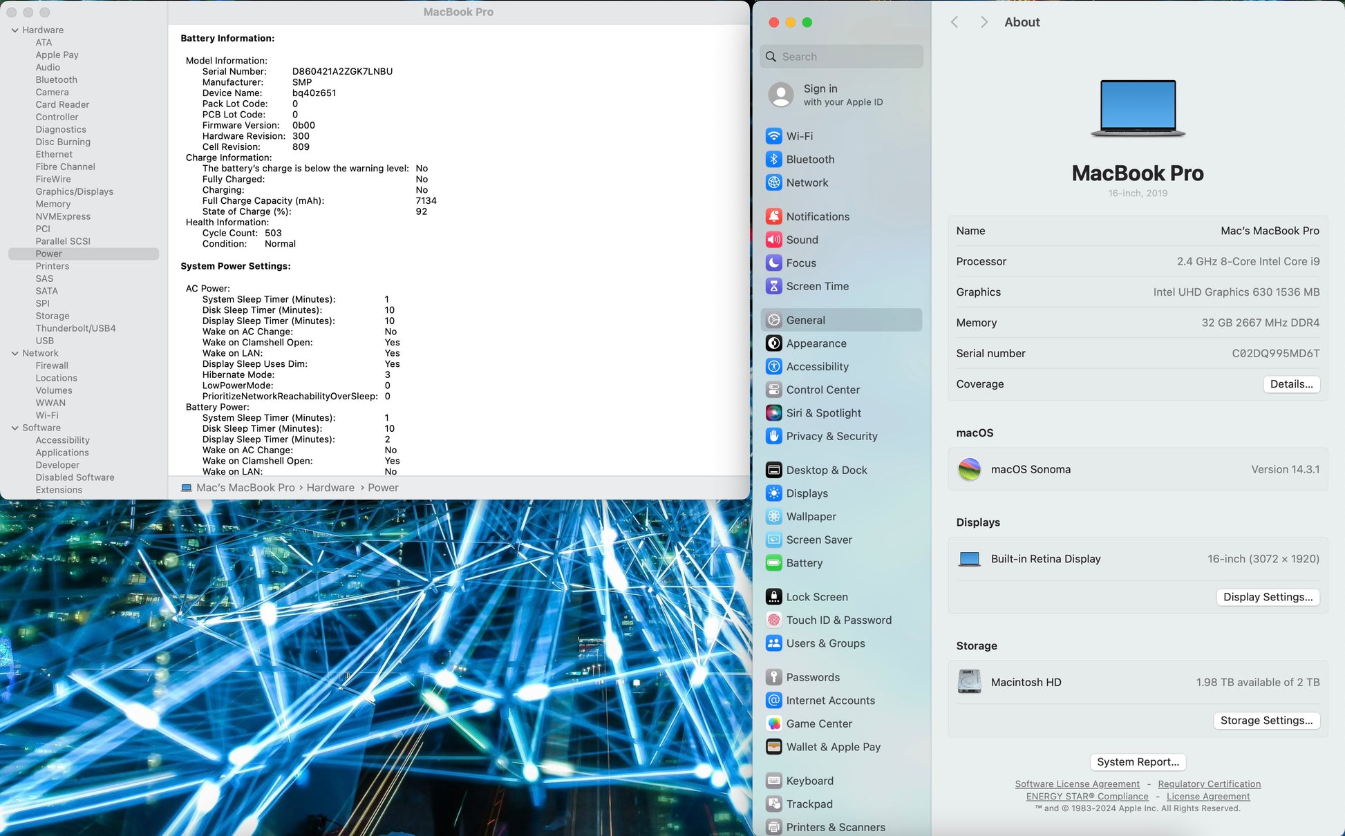 • This MacBook Pro is in very good condition with minimal signs of wear, The MacBook's keyboard and trackpad are in perfect working order, and the display is bright and clear. The battery has been well cared for with only 503 cycles! And retains excellent charge capacity. This MacBook Pro has been thoroughly tested and reset to factory settings, ensuring that it's ready for its new owner to use right out of the box. It comes with original accessories, including a charger and an Apple box (if it's available). This MacBook is backed by a 1-year warranty from Allstate! Please refer to the pictures for a better understanding of the condition.